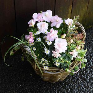 ベゴニア、アスチルベ、ペチュニアの寄せ植え ワイヤープランツ、ヒューケラ、 カレックス