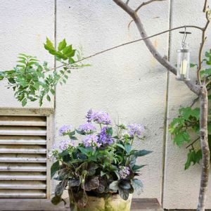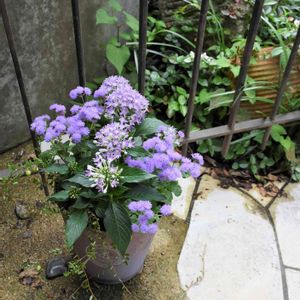 ペンタスとアゲラタムの寄せ植え どちらも涼しげです。