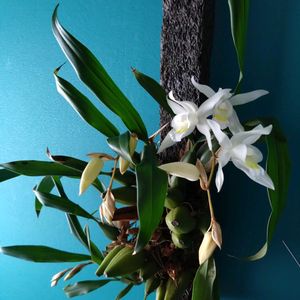 セロジネ インターメディア Coelogyne Intermedia Cypher (1913) 室内の南側窓際に置いていた株が咲き始めた。 昨年だったか、花が咲いた時に苞葉を取り除くとすっきり綺麗に見える、って書いてた方がいたので、取ってみた。1枚目が取った方。2枚目が取らなかった方。たしかに取った方がすっきりして見えるかも。花茎の沢山上がった大株だともっと違いが出るかもね。