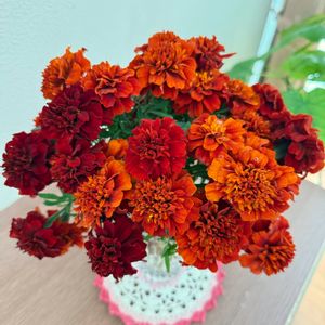 マリーゴールド アンティーマリー カットして部屋に飾りました もういい加減球根や花苗植えないといけないので 花壇整理しました 千日紅もカットしてドライフラワーにしようと思ってます