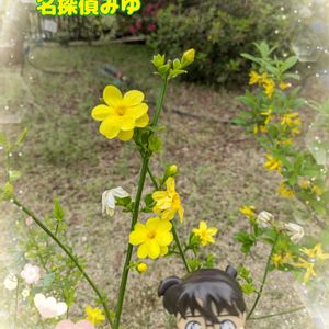 こんばんは✨ 今日は休みで膵炎&胆嚢炎で入院している長男の病院に行ってきました。長女夫婦と次男、主人と久しぶりに家族全員で会えました。 長男も順調に回復しているようです✨ 今朝の花壇の白い花たち🤍とコナンのどたま 🏷どたま祭り 🏷白い恋人達 🏷白い貴婦人✨ 1枚目 🏷映画の日 アフリカンマリーゴールド& 1999年の「世紀末の魔術師」 コナン映画3作目で怪盗キッド、服部平次、遠山和葉、灰原哀など映画初出場のキャラクターがいっぱいいます✨ 2枚目 🏷カレンダーの日 オダマキ&六花さんからのカレンダー 3枚目 🏷日曜ビタミンカラー♪ 白いアゲラタム&ビタミンカラーのジニア 4枚目 🏷今日のお花 スイカズラ アネモネシリベストリス&スイカズラ、別名ハニーサックル(過去picより) 5枚目 🏷日曜日は日本を感じる和の花 セラスチウム&神社のツツジ
