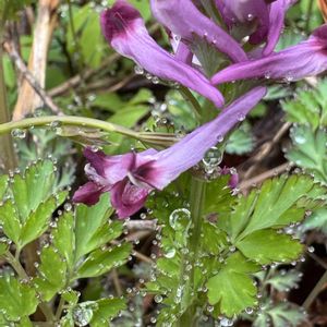 ムラサキケマン(ケシ科キケマン属) 昨夜は雨☂️でしたが 朝には上がって 朝🐕散歩も滞りなく終了 ここは今 ハナモモが満開❣️ヤマブキ、モクレン、ヤマザクラもまだ楽しめます💕 やはり今年は花が遅いかも⁉️ ムラサキケマンも出たばかりのよう 後から撮った写真を見たら雫💧がキレイに並んでいました〜💧💧💧 5/12 追記 葉に広がる道管の先端に「水孔」と呼ばれる小さな穴があり、そこから余った水は排出される💧