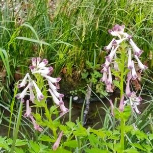 「湧水池脇で見つけた」 撮影📱2025.4.6 おはようございます😀 熊本市・上江津湖の 芭蕉園湧水池で撮影📱 ムラサキケマン🌼 独特な形をする花は 湧水池脇で群生してたよ 名前の由来は… ムラサキ➡紫色 ケマン➡仏殿に吊る 仏具の華鬘(けまん)の形 に似ている事から この花🌼はケシ科の 有毒植物で 茎が折れた時に出る 白い液を触るのは厳禁🈲