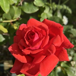 咲きました❣️今年の一輪目🌺美しい朱色に惹きつけられます✨
