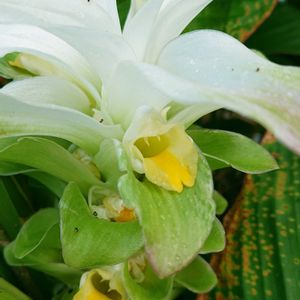 おはようございます🎶 今日は我が家の庭の花達を紹介させて下さい! 1️⃣、2️⃣ウコン(ショウガ科) おそらく秋ウコンかな🤔⁉️ 似た花のクルクマは観賞用! ウコンは食用として改良されたもので、お馴染みのカレー粉だったり、薬だったり… 花に見えるようなのは、包葉で、花はその下の黄色の小さなのが花です😆🎵🎵 長持ちするので、私は観賞用、切り花用として栽培しています😉‼️ 3️⃣メドセージ(シソ科) その他サルビア、ガラニチカと呼び名があります❗ ハーブですが、食用出来ません😅‼️ 4️⃣ボケの花(バラ科) 花友さんも投稿されてましたが、我が家も咲いてました👍‼️ 5️⃣アップルミント(シソ科) さくらんぼの木の下に生えてますが、どくだみ並みに繁殖力が半端ありません😅‼️ 花壇のブロックをくぐり抜けて、芝生まで広がっています😅‼️