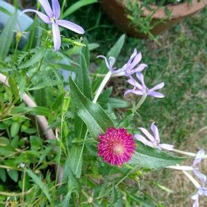 冬越しできなかった千日紅 種まきしたのが咲きだしました😃 咲くまでは赤かピンクかわからなくてワクワク❣️ あのイソトマもまだまだ元気😉