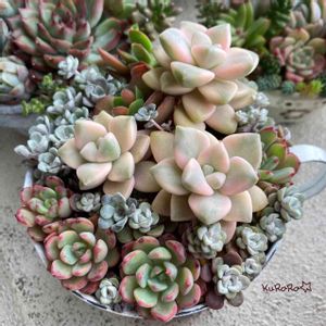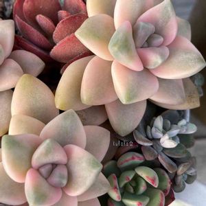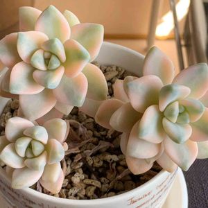 ティチュバンス錦 (グラプトベリア属) 別名 アプリコット美人✨ 1月に投稿して、1月末にチョンパ✂️しました(*˘꒳˘*) ぷりぷりで斑入りの赤ちゃん👶が、すくすくと育っています(*´˘`*)♡ 大きくなってね~(ㅅ´ ˘ `)♡