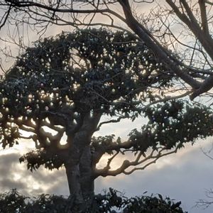 前投稿の2枚の白樫の木です。先程の木は全体を写し難いので、これは土手の下のご近所さんの畑跡地の木です。 先程の木は家の斜面の境界際でしたが、気付けばお隣りの空き地にも点々と生えていて、夫々が大きく育って来ています。常緑で枝葉がとても密な感じがします。 福島以西の山地に生え、風除けの生垣にも使われるそうです。材としては白いそうですが、樹皮が黒い為「クロカシ」とも呼ばれるそうです。 この名前は一昨年にヤベフウさんに教えて頂いたのですが、今回改めて調べて、よく頭に入れました。