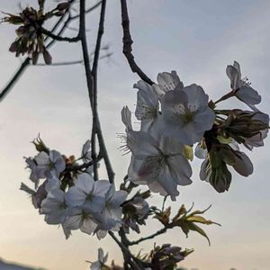 🏷金曜日の蕾たち…🤍 小さな白いお花の富士桜。今日は一日中強い北風に、吹かれては逃げる蕾を捕まえて…。僅かに開きかけていた花びらが更に捲くれて、こんな可愛い姿を撮ることになりました。🌸