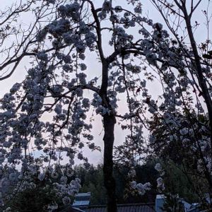 昨日暗くなりかけてから小屋の屋根に枝を伸ばす富士桜を写しました。何枚撮っても写し足りない美しさです。大きく育ってきたので来年はライトアップしたら?…と欲が出て来ます。