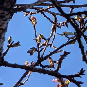 今日の河津桜、お花が咲き始めの新鮮さ…黄緑の葉とピンクがとても心地良い美しさです。 甲府にも昨年より9日も早く開花宣言が出されたそう。いよいよ桜の季節となりました。
