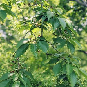 枝垂れ桜に小さな赤い実がいっぱい!中に黒く熟した実も 1つ口に含んでみるとちょっと渋みはあるものの柔らかくて甘い!