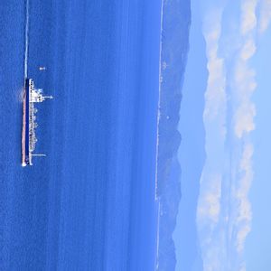 ~番外編~ 🎵 海は 広いな 大きいな~ 🎵 といっても、瀬戸内海。😂 向こうに 見えるのは、周防大島。 おたまじゃくし のような島の、しっぽの部分だよ。 さらに 向こうの山々は、四国・・・😲 毎日 暑い中、ちょっとした 涼感をネ・・・😋 🏷土曜はお空の発表会 🏷雲仲間 🏷美しく青きドヨウ
