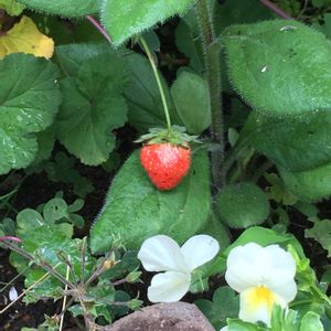 小さいけれど なかなかワイルドな顔つき😆 初めての収穫です🍓 イチゴのつぶつぶが しっかり感じられて とっても美味しい😋 庭の小さな鉢植え🪴 ワイルドストロベリー🍓 こぼれ種から よく成長してくれました♪