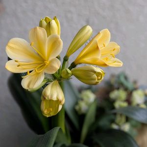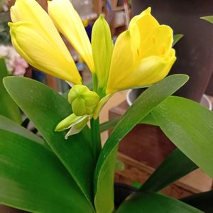 今日のお花 君子蘭✨ レモンイエローの爽やかな 花色です💛 昨年はお休みでしたが今年は 綺麗なお花を咲かせてくれました♬