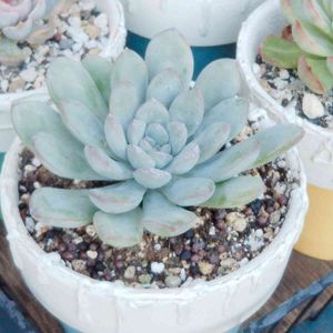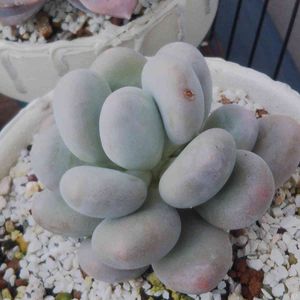 ブルームの白いお化粧とうっすらピンクのパキベリア・ブルーヘイズです☺️🍀 プクプクの姿を維持して、夏の日差しに耐えてます🚩😃🚩
