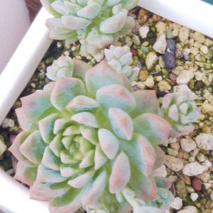 おはようございます☁️ 外で育てているヌスバウメリアナムの子株を、もう少し大きくしてみようと思っている間に、親株が黒くなって消えてしまいました😹 びっくりしましたが、子株が3つスッと伸びた姿が可愛いので少し安心しました。 今年初めの寒さで弱りかかったプリドニスは、暑さは得意なようで、大きくなって色もとても綺麗になりました。これからくる冬の寒さには気を付けたいです☺️🍀