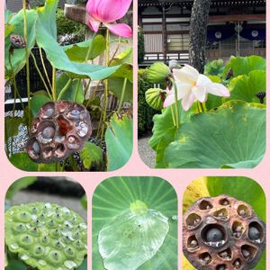 まだまだお寺の境内には、蓮がたくさん咲いています 今朝は中国古代蓮が,久しぶりに咲いていました❣️ 蓮の実と枯れた葉を描いた、伊藤若冲の絵が大好きです