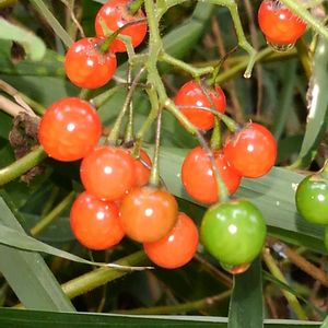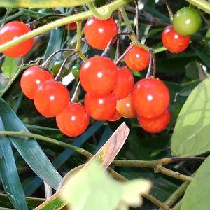 今日も暖かい🤗☝️➰🎵🎶 自宅のいろいろな用事で バタバ➰☝️ 午後から少し落ち着いたから バイク🛵の調子伺いと そろそろヒヨドリジョウゴの実が 色づいたかなぁと🛵💨💨💨 おーやっぱり可愛いルビーの ような赤い実が輝いている🤗➰🎵🎶 本当に可愛いし癒しだし 去年より沢山の実がブラブラと ズキズキ ワクワク💃🕺 ヒヨドリジョウゴ🔴