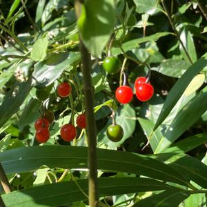 ヒヨドリジョウゴ 去年、見つけた空き地はすっかり 刈られていてガッカリ😖⤵ でも、まさかの我が家の庭‼️ 草取りをしていて隅っこにあるのを 発見しました🙆 毎日🐦さんが賑やかいので心配しました(笑)