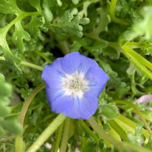 葉っぱがモリモリしすぎて、巨大キャベツを超える大きさになった と先日投稿したネモフィラ。 昨日かき分けてみたら一つ蕾を発見✨ めでたく昼に開花しました😍 蕾、他にもいくつかありました😊🎶