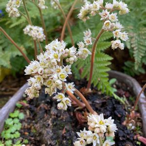 タンチョウソウ(イワヤツデ) 小さいお花がいっぱい。 ついこの前はゴツゴツした岩みたいな根っこしかなかったのに、いつのまにか花が咲いてた。 このあと、ヤツデみたいな葉っぱが出てきます。