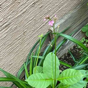 ピンボケでごめんなさい😓💦 三時草 ハゼラン オリヅルランの間からぐんぐん 伸びて開花しました❣️ ようこそミーシーの こぼれだね仲間プランターへ😆 🏷開花い式 結構集まってる⁉️