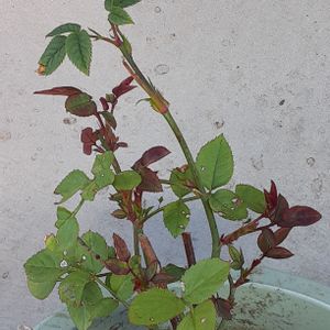 夫の実家のバラ 掘り上げて我が家に持ってきました 本体は、枯れました(꒦ິ⌓꒦ີ) 3本の挿し木の1本から、葉が出てきました 嬉しい🎶 赤く見えるところが新葉です