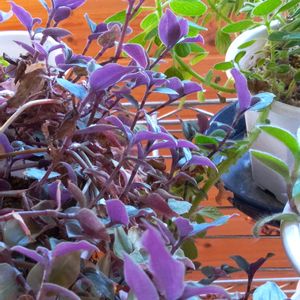 紫💜が綺麗なカリシア 後ろの緑はアロマティカスです 🏷️葉っぱいいなぁ