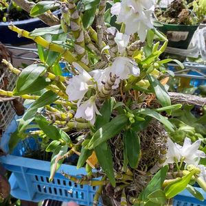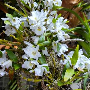 昨日 となり町の園芸センターにパトロールしに行ったよ。 デンドロビュームデンシフロラムお花8房展開中。ぶどう狩りを思い出すくらい大きな株と花房にクラクラしてお買い上げぇ😘。すごいよぉ。見たことないよ、こんなの。