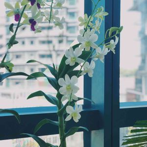 うちの季節はずれさん 第2弾 デンドロビューム ✨ 白い花のデンドロ フィズも咲きそうです 夏空の下のデンドロもいいですね😆💕