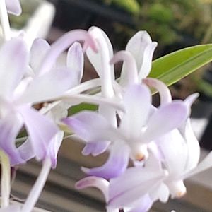 お花に詳しくないので バンダ ルースネリーなのか ネオスティリス ルースネリーなのかどちらかなのかな❓って迷ってました💦 今日はお墓参りに行ってきたのですが 近くのスーパーはほぼお花が完売💦 なので 近くのJAに寄ってみると 小さなお花が売られていて 目についたのがこの愛らしいお花 バンダ ルースネリー (ラン科バンダ属) フウランを親に持つ非常に珍しい超コンパクトなバンダの交配種だそうです 白地に薄っすらブルーのワンポイントが愛らしい小花をびっしりと咲かせます バンダの花言葉 上品な美しさ エレガント 華やかな恋