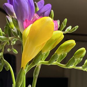 今日のお花、フリージア🍀 お部屋に明るい、黄色のフリージアが欲しくてJAへ😄 しかし黄色だけの花束は無くて、諦めて帰りかけましたが、せっかく来たのだからと、購入し車に🍀 別の用事を済ませて車に戻ると、狭い車内は甘やかで爽やかなかほりで、満たされていました😍✨💕‼️ あ〜、なんという幸せ🥰 マスクを外して、思い切り春の賜物を享受いたしました💛💜💕 3枚目は、友がドライブ先から送ってくれたpicです💛💚 1️⃣2️⃣2024/3/23 3️⃣ 2024/3/22 撮影🍀