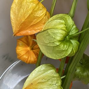 今日のお花、ホオズキ🍀 今年もまた、ホオズキの季節がやってきました😄 ホオズキらしいオレンジ色の中に、こんな素敵な色合いの実も💚💛💕 ホオズキのお花、皆さんの投稿で初めて見ることができました😅 白いお花なんですね🤍💚💛🧡😊 1️⃣2️⃣3️⃣2024/7/7 撮影🍀
