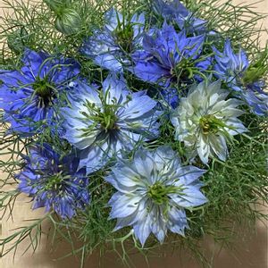 いつものJAで出会った、ニゲラたち🍀 JAの切り花コーナーで、ニゲラさんを発見💕‼️ お花の種類は、そんなに多くないけれど、季節のお花が優しいお値段なんです☺️ 庭にも咲いているけど、私好みの色合いに 即買い決定‼️ このニゲラさんが咲いていた、ニゲラ畑を見てみたいな、と思いました😄💙✨💕😊