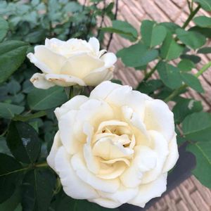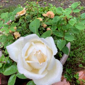 ホワイトクリスマス♡ 2番花、咲きました😊 白い花びらはとてもデリケートで この雨ですぐにシミが出てしまいます💦