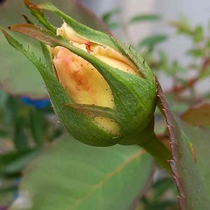 こんにちは 蕾がクリーム色ですがホワイトクリスマスです。6月30日に撮りました。 今は白色の花を咲かせていますが大雨なので窓辺から見ています☔️😢 雨、早く止むと良いです