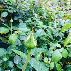 1番初めに蕾を持った子🌹 寒かったり☔だったりで足踏み状態だったけど、やっと咲きました🤗 初めて見るお顔なので🎵 もっと開くのかな💦⁉