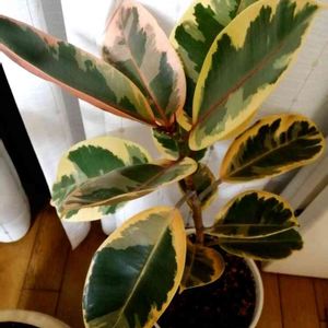 斑入りのゴムの木✨🌿✨ 新葉は、赤色が強い葉っぱで圧倒される感じ❣️