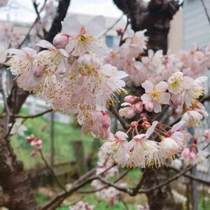 家の裏にあるさくらんぼ🍒の木 開花してます。薄ピンクで可愛らしい(^^)咲いてくると春を感じます🌸
