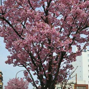 東邦医大通りの寒桜 並木が続く。 満開です。