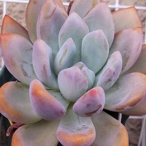 フェンスの上で放置 でもめちゃくちゃ元気な グラプトベリア・ピンクマーブルさん💗🤍 お粉が日焼けを防いでくれてます☀ 日焼け止めも効かなくなったお年頃(お年寄りか?)には 羨ましい限り…😸💧