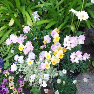 寄せ植えを作りました。 オステオスペルマムは 花びらの裏表の色が違っておしゃれ〜 花カンザシは蕾が小さくて可愛い カレンジュラのオレンジ色でアクセント ←一丁前に💦 雨上がりで気持ち良さそう。 お花のお手入れで気分もあがる⤴︎ って 他の家事もやらなくちゃ💦