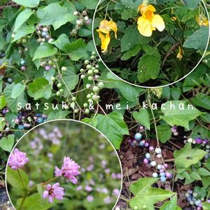 🐶散歩でパチリ📷️ ノブドウは、キレイなアクセサリーになりそうです✨👀 ↗️キツリフネ、ツリフネソウの黄色いの😊 ↙️ミゾソバ、薄ピンクの可愛いお花です😊💓 日が短くなってきたので、慌てて散歩🐾🐾 道端には可愛いお花が咲いていて😊もっとゆっくりしたいけど💦もう、5時には山に日が沈んでしまいます💦 春も秋もあっという間・・ もっと長ければいいのに (´・ω・`)💚