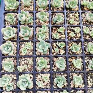 上3つは、まだ3㎝トレーに入っとるやつ😳 その他は4㎝トレーかな? みんな太陽の方向いとる☀️👀 それぞれ顔が違う(*・ω・) フチの赤が濃かったり 葉が少しふっくらしとったり...(*´-`)❣️ ただただ可愛いぃぃぃっ( *´艸`)
