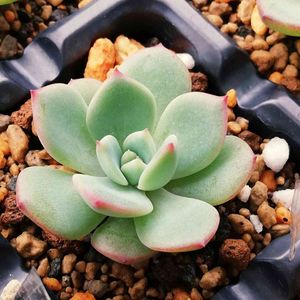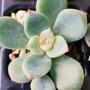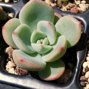 私の交配苗ちゃん😍 厚みのある葉にフチは色付くっていう... この子理想に近いかもしれん❣️ 大きくなったら葉挿しで増やそ( *´艸`)