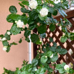 アラビアンジャスミン 又花が付いた🎶 お花が薔薇のよう🤍🤍🤍🤍🤍 香りも強いし 葉の色もツヤツヤ 夏の猛暑でもあなたはご機嫌なのね〜(⌒-⌒; ) *・゜゚・*:.。..。.:*・'(*゚▽゚*)'・*:.。. .。.:*・゜゚・*