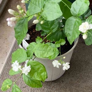 グレイスフルレディージェイドが咲きました💕(向かって左pic.) 実は我が家には、3タイプのアラビアンジャスミン(茉莉花)があります🤍 まずは、一番最初にお迎えした一重の茉莉花(右上pic.) その後八重の茉莉花もあるのを知り、「欲しいな〜💕」と思ってところ“八重”のタグの付いたものを発見してお迎え♫私が思っていた“八重”は、コロンとしたバラ咲きだったのですが、咲いたのは花びらの数こそは一重より多いけれど、思っていた形ではなくて…😅(右下pic.) 「ま、仕方ない。これも綺麗だし」と思っていたところ、お迎えから1ヶ月も経たない内に、同じお店で“ジェイド”との出会い✨「流石に3つは…😟」と思ったけれど…お迎えしてしまいました❣️ どの茉莉花もそれぞれに綺麗で芳しい💖 アラビアンジャスミン 茉莉花
