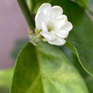 アラビアンジャスミン(茉莉花)の花が咲いてました❣️ まさかこんな時期に咲くとは😲 まだまだシーズン前ということで、小さな小さなお花だったけど、しっかりジャスミンの香りがしました💕