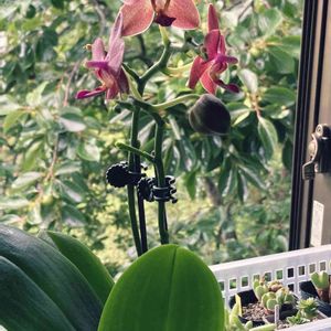まさかの花芽が出てきたため、花期後に一旦はずしておいた棒とクリップを装着。よもやこの棒を使う時が来るとは…。万に1つもないだろうと思ってた。 2つ目の花芽は引っかけてしまい脱落😭 茎から直接出てきた花芽らしきものも有。現在トータル2本。 (明度を調整してます)